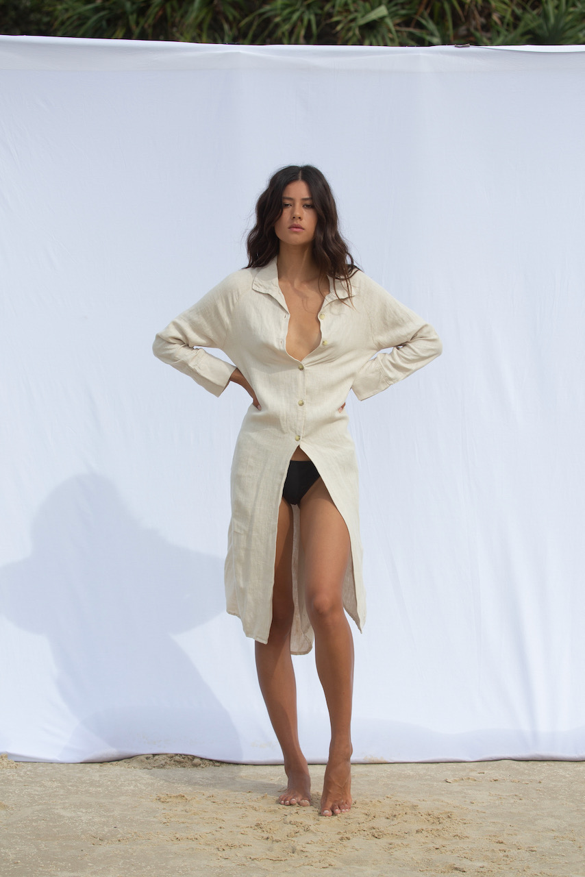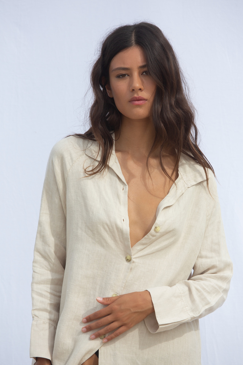 Our Japanese inspired THE ANDIE, with its soft and organic feel, comes in a beautiful natural hue. This full-length linen shirt can be a relaxed dress on warm summer days or an easy cover-up on cool mornings.