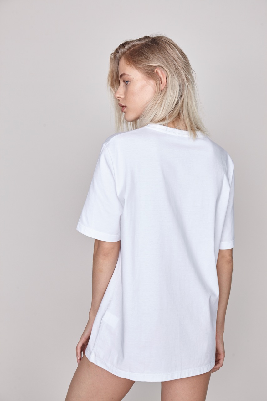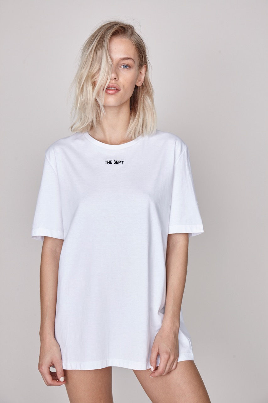 Our THE CAROLINE in a beautifully textured cotton is a modern take on the mid-sleeve tee. It is distinguished by its boyish fit and a minimalistic THE SEPT embroidery.