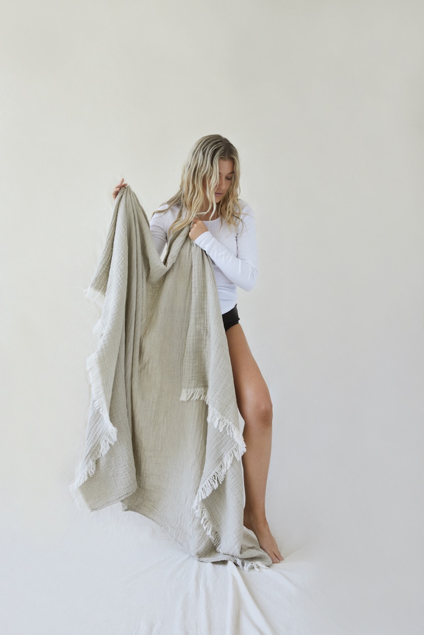 Soft to the touch, this thoughtfully designed plaid comes in a natural hue. Sustainable in production and design. 180 cm x 130 cm.